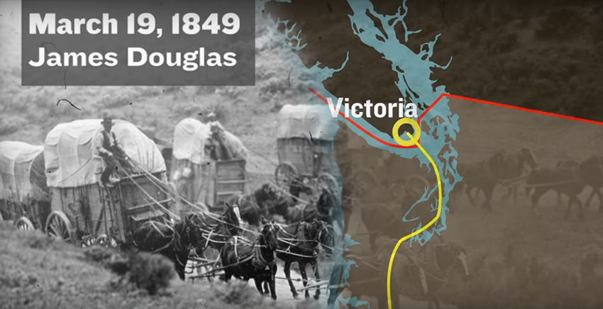 Governor James Douglas led a caravan to his new capital, Victoria